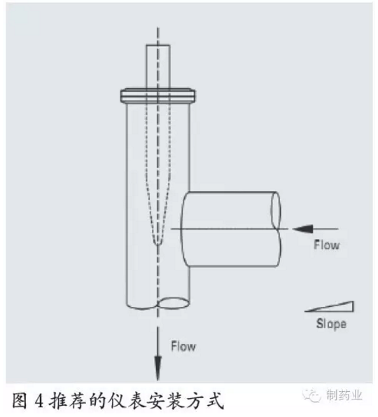 圖5所示的安裝方式管道的自排凈功能明顯一些,但基于現場安裝的限制,圖4所示的安裝有時也可以采用,只要經過驗證,對水質不會造成影響也是可以接受的。